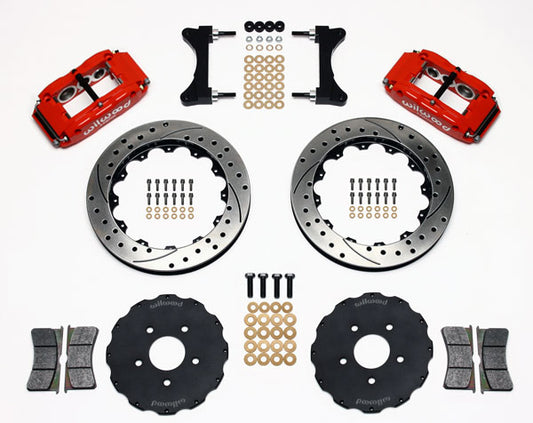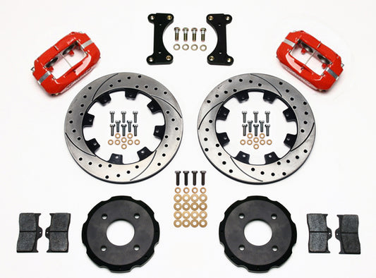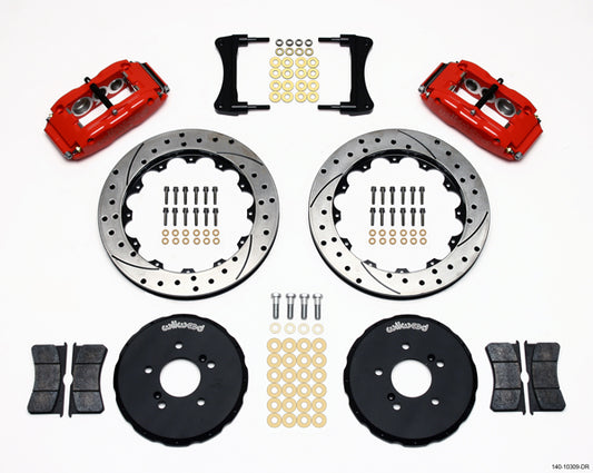01-06 LANCER EVO FULL DISC BRAKE KIT,13" DRILLED ROTORS,RED CALIPERS