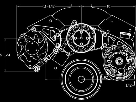 SBC,SERPENTINE CONVERSION,POLISHED PULLEYS,TOP MOUNT ALTERNATOR BRKT,KEYWAY PS