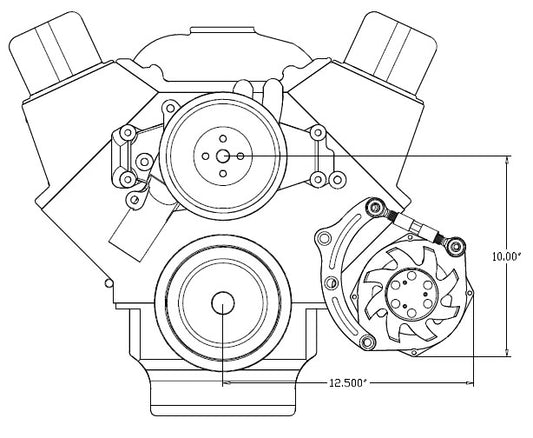 SBC,SERPENTINE CONVERSION,POLISHED PULLEYS,MID MOUNT ALTERNATOR,PRESS-ON PS,A/C