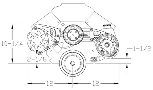 BBC,SERPENTINE CONVERSION,BLACK PULLEYS,TOP MOUNT ALTERNATOR BRKT,KEYWAY PS