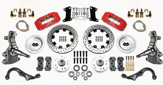 67-69 GM F FRONT DISC BRAKE KIT,2" DROP SPINDLES,ARMS,6 PISTON,12" DRILLED,RED