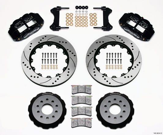 98-02 CAMARO FULL DISC BRAKE KIT,14/13" DRILLED ROTORS,BLACK CALIPERS