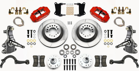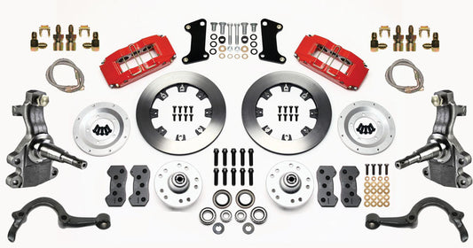 64-72 GM A-BODY FULL DISC BRAKE KIT & 2" DROP SPINDLES & ARMS,11" ROTORS,RED