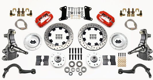 64-72 GM A FULL DISC BRAKE KIT,2" DROP SPINDLES,ARMS,6 PIS. FRONT,12" DRILL,RED