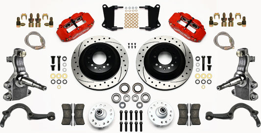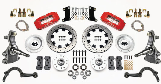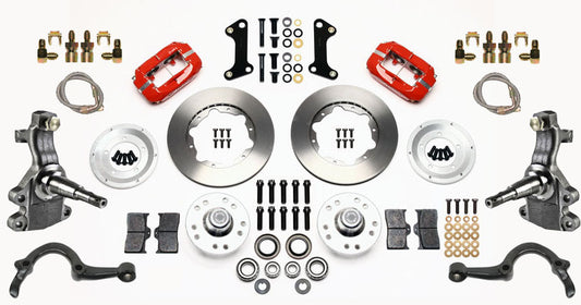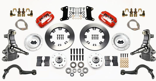64-72 A-BODY DISC BRAKE & 2" DROP SPINDLE KIT,11" ROTORS,RED WILWOOD CALIPERS