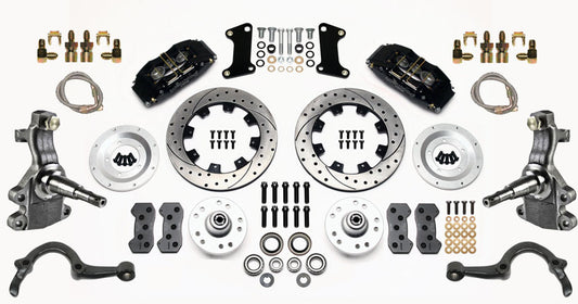 64-72 A-BODY DISC BRAKE & 2" DROP SPINDLE KIT,11" ROTORS,BLACK WILWOOD CALIPERS