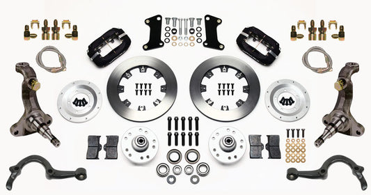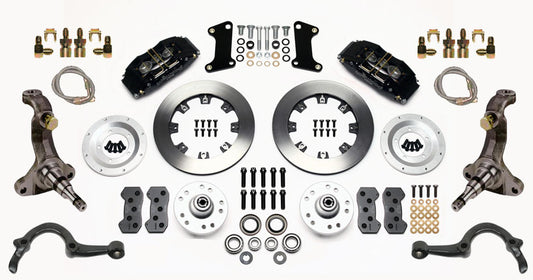 64-72 A-BODY DISC BRAKE & STOCK HEIGHT SPINDLE KIT,11" ROTORS,BLACK WIL CALIPERS