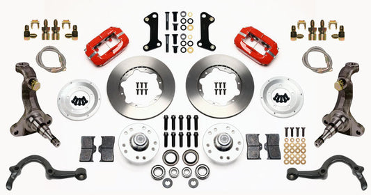 64-72 A-BODY DISC BRAKE & STOCK HEIGHT SPINDLE KIT,11" ROTORS,RED WIL CALIPERS