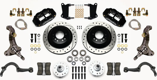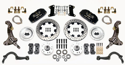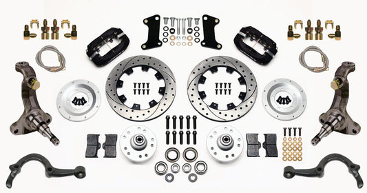 64-72 A-BODY DISC BRAKE & STOCK HEIGHT SPINDLE KIT,11" DRILLED ROTORS,BLACK WIL