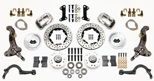 64-72 A-BODY DISC BRAKE & STOCK HEIGHT SPINDLE KIT,11" DRILLED ROTORS,CALIPERS