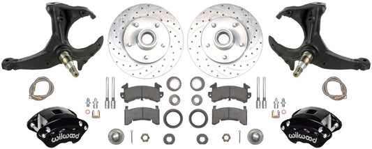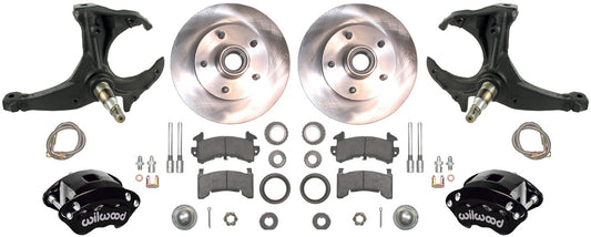 79-87 G-BODY DISC BRAKE & 2" DROP SPINDLE KIT,10.5" ROTORS,BLACK WILWOOD CALIPER