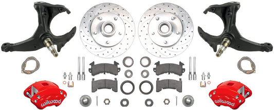 79-87 G-BODY DISC BRAKE & 2" DROP SPINDLE KIT,10.5" ROTORS,RED WILWOOD CALIPERS