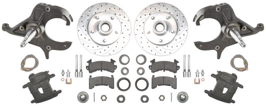 79-87 G-BODY DISC BRAKE & 2" DROP SPINDLE KIT,10.5" DRILLED ROTORS,CALIPERS