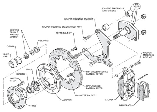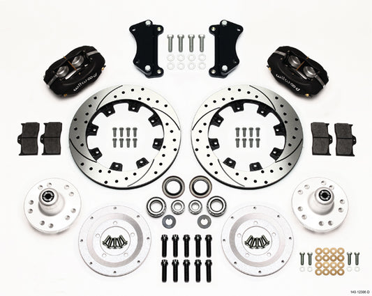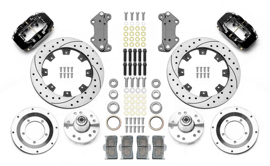 55-57 CHEVY DISC BRAKE & 2" DROP SPINDLE KIT,10.5" DRILLED ROTORS,BLACK WILWOOD