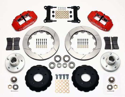 63-70 CHEVY C10 FULL DISC BRAKE KIT & RIDETECH SPINDLES,14"/13" ROTORS,RED CALIP