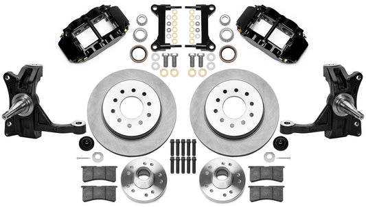 71-87 CHEVY C10 FULL DISC BRAKE KIT & WILWOOD IRON DROP SPINDLES,13" DRILLED,BLK