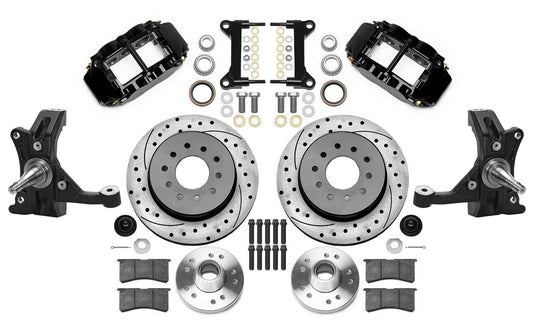 88-99 CHEVY C1500 FRONT DISC BRAKE KIT & WILWOOD DROP SPINDLES,12" DRILLED,BLACK
