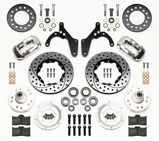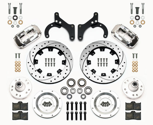 59-64 CHEVY DISC BRAKE & 2" DROP SPINDLE KIT,11" DRILLED ROTORS,BLACK WILWOOD
