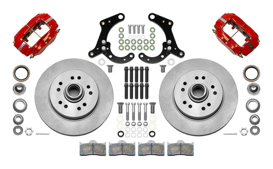 59-64 CHEVY DISC BRAKE & 2" DROP SPINDLE KIT,11" ROTORS,RED WILWOOD CALIPERS