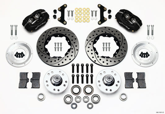 57-62 CORVETTE FULL DISC BRAKE KIT,11" DRILLED ROTORS,BLACK CALIPERS