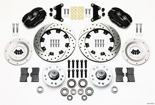 57-62 CORVETTE FULL DISC BRAKE KIT,12" DRILLED ROTORS,BLACK CALIPERS