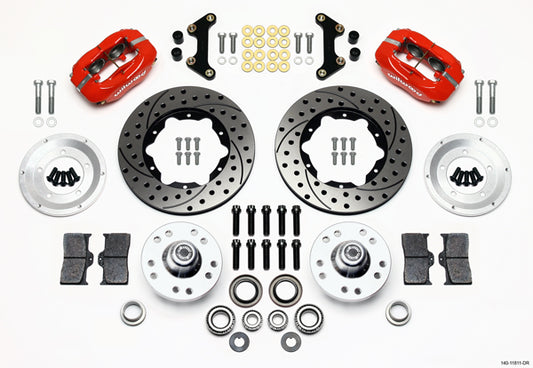 57-62 CORVETTE FULL DISC BRAKE KIT,11" DRILLED ROTORS,RED CALIPERS