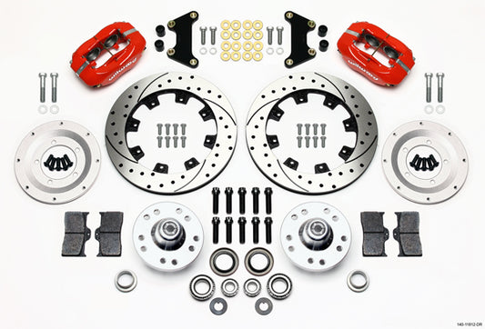 57-62 CORVETTE FULL DISC BRAKE KIT,12" DRILLED ROTORS,RED CALIPERS