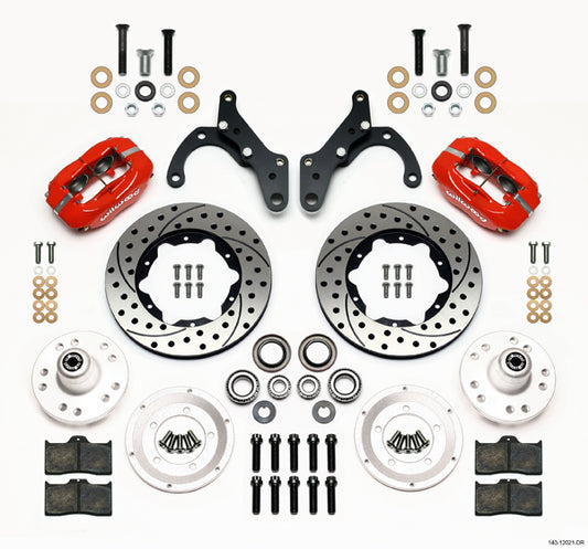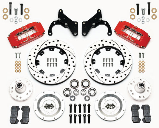 65-68 IMPALA FULL DISC BRAKE KIT,12" DRILLED ROTORS,RED CALIPERS