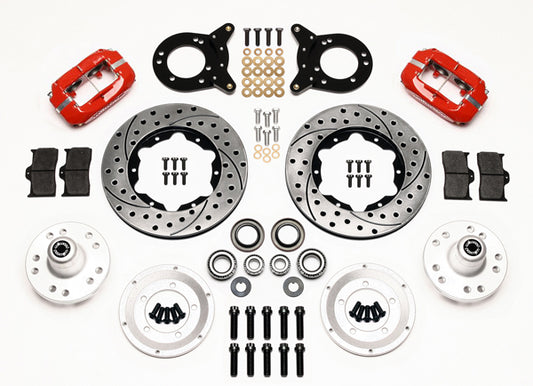 70-73 FORD,MERCURY FULL DISC BRAKE KIT,12" DRILLED ROTORS,6/4 PISTON RED