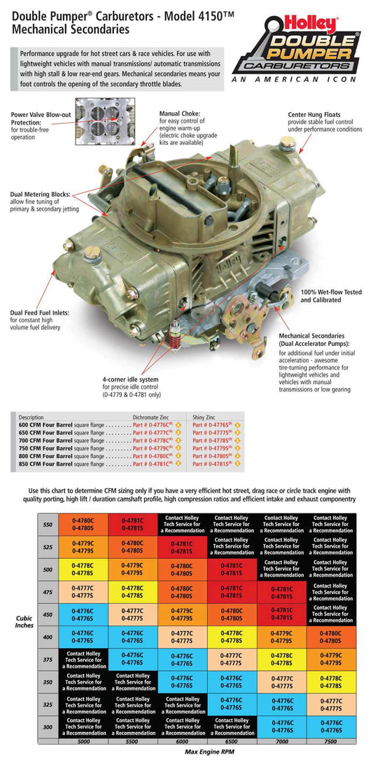 CARBURETOR,4150,650 CFM,CLASSIC,MECHANICAL,DOUBLE PUMPER,MANUAL CHOKE