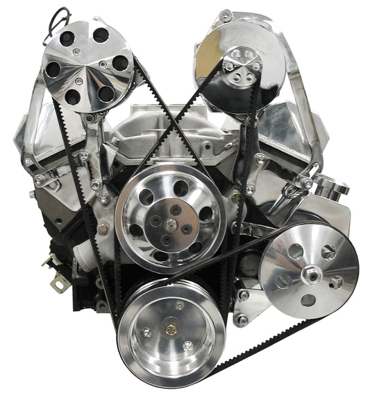 SBC,POLISHED FRONT ENGINE KIT,V-BELT,WP,ALTERNATOR,COMPRESSOR,POWER STEERING