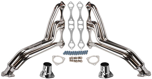 HEADER,SBC,1 5/8",1935-1948 FAT FENDERWELL,2 1/2",POLISHED STAINLESS STEEL