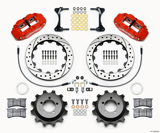 SUBARU IMPREZA,SAAB,REAR,DP,12" DRILLED ROTORS,RED