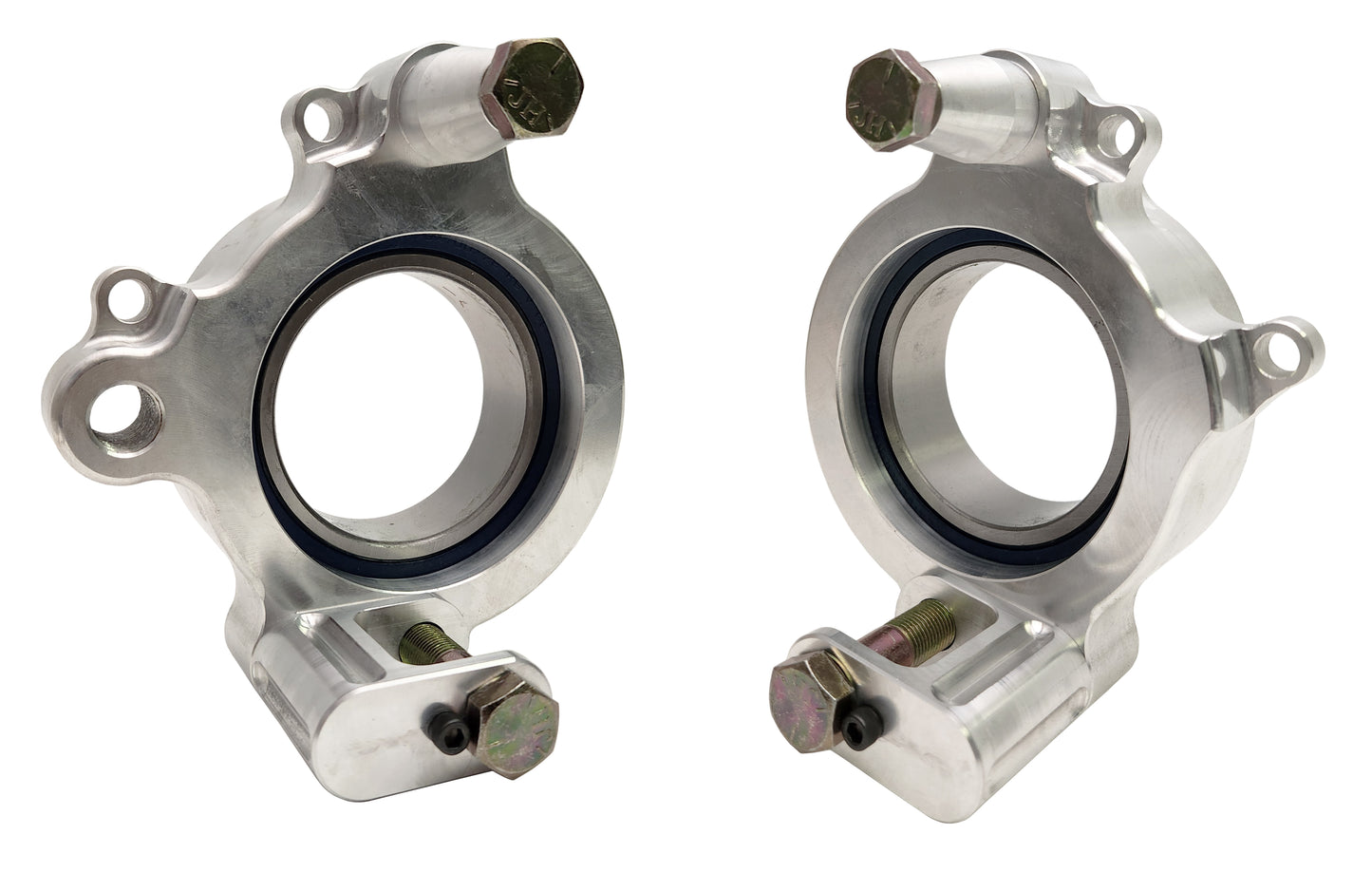 These Sprint Car Birdcages feature single 2.750-inch ID bearings. They are crafted from polished aluminum for a durable and sleek finish. The set includes both a driver side and a passenger side birdcage.