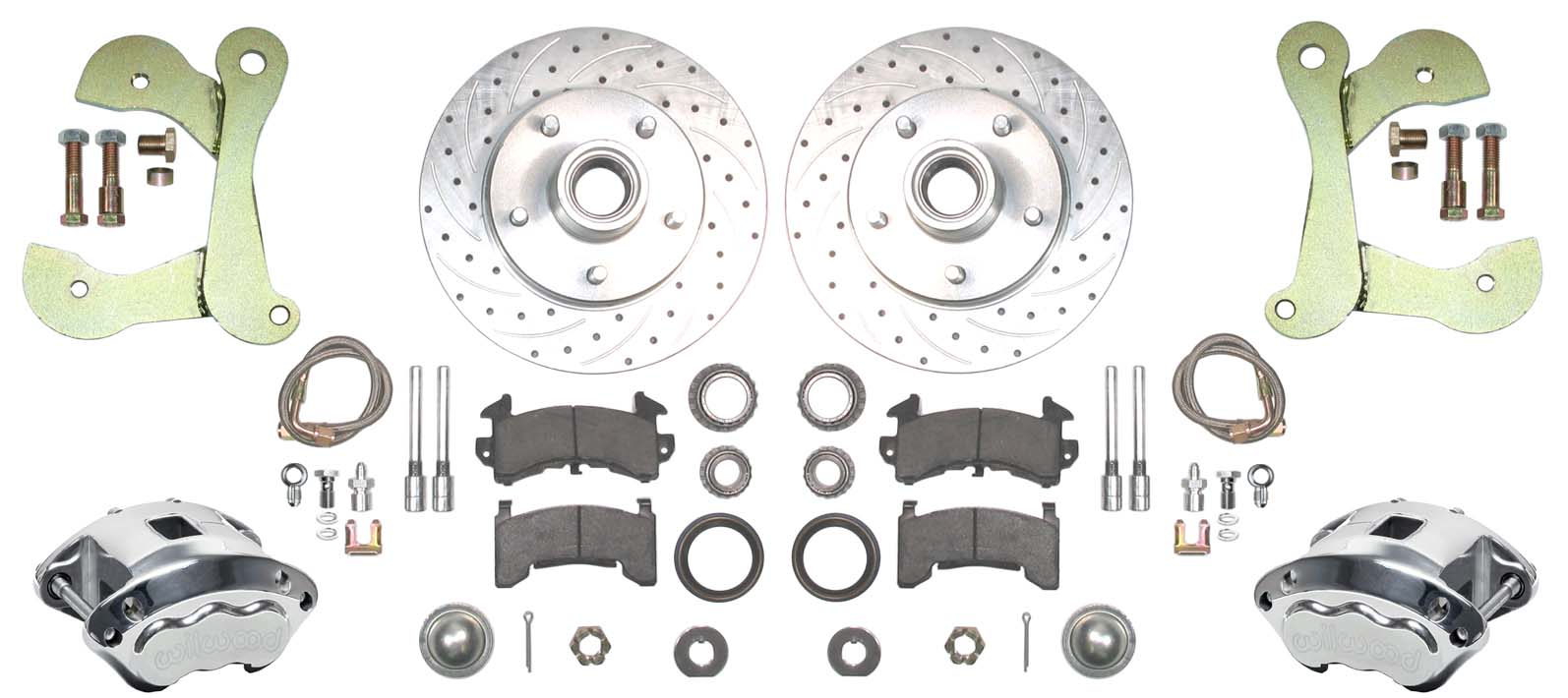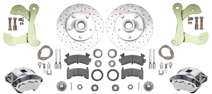 55-57 CHEVY DISC BRAKE CONVERSION KIT,11" DRILLED ROTORS,D154 POLISHED CALIPERS