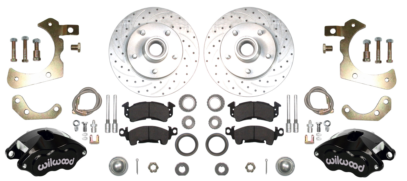 59-64 CHEVY DISC BRAKE CONVERSION KIT,11" DRILLED ROTORS,D52 BLACK WIL CALIPERS