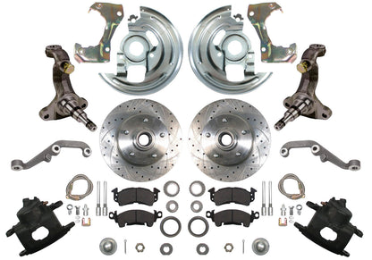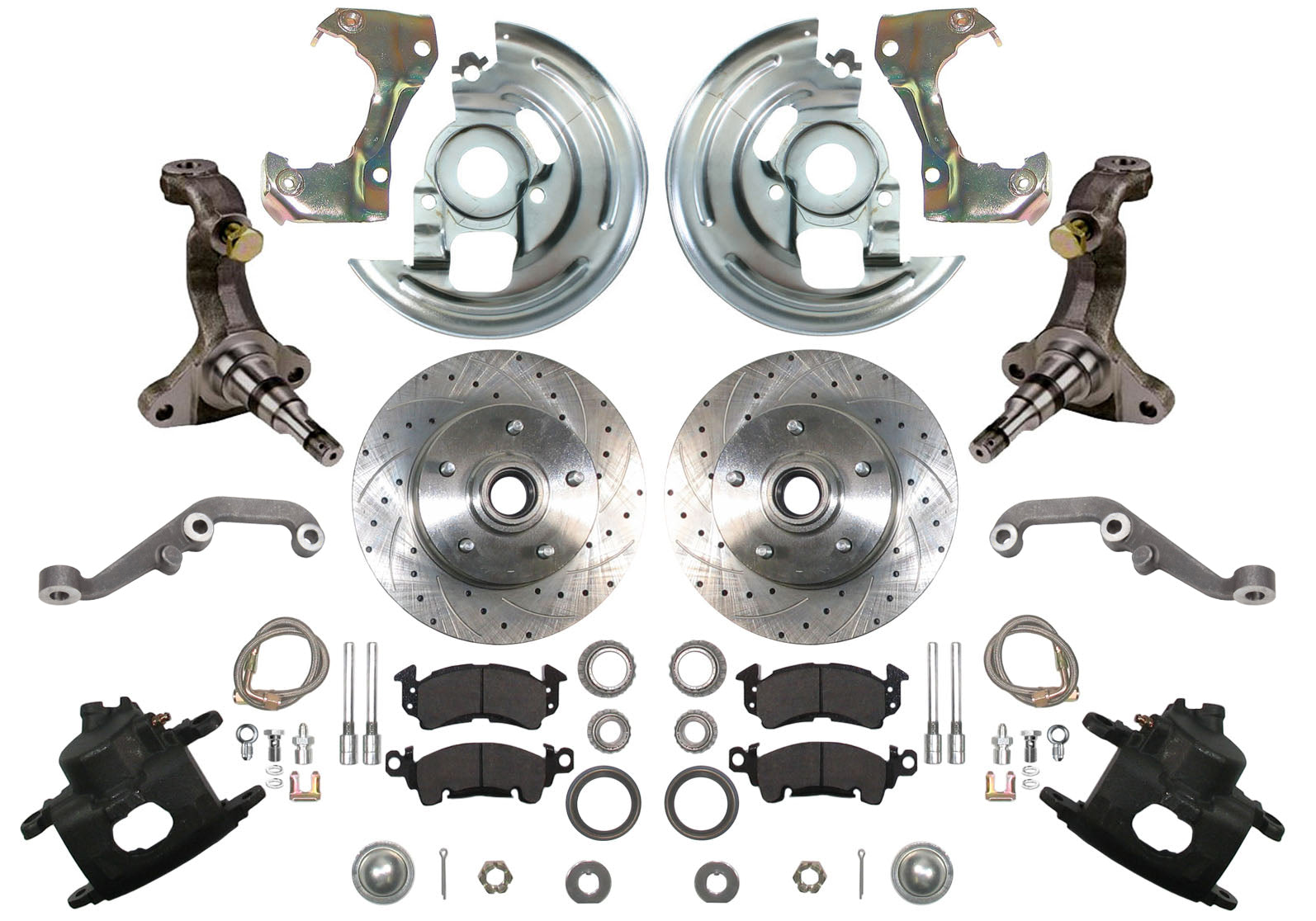 62-67 X-BODY DISC BRAKE & STOCK HEIGHT SPINDLE KIT,11" DRILLED ROTORS,CALIPERS