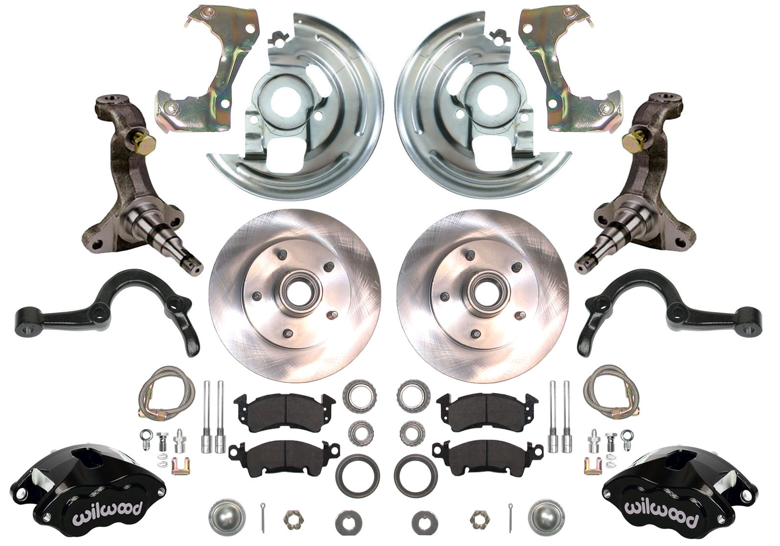 64-72 A-BODY DISC BRAKE & STOCK HEIGHT SPINDLE KIT,11" ROTORS,BLACK WIL CALIPERS
