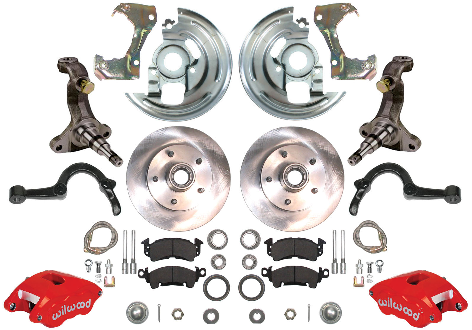64-72 A-BODY DISC BRAKE & STOCK HEIGHT SPINDLE KIT,11" ROTORS,RED WIL CALIPERS