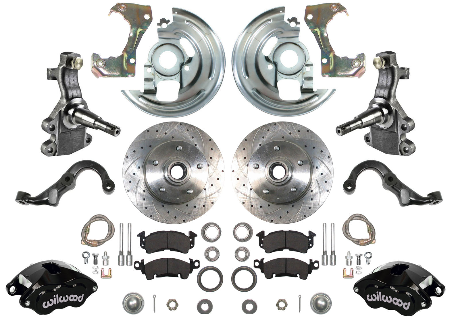 67-69 F-BODY DISC BRAKE & 2" DROP SPINDLE KIT,11" DRILLED ROTORS,BLACK CALIPERS