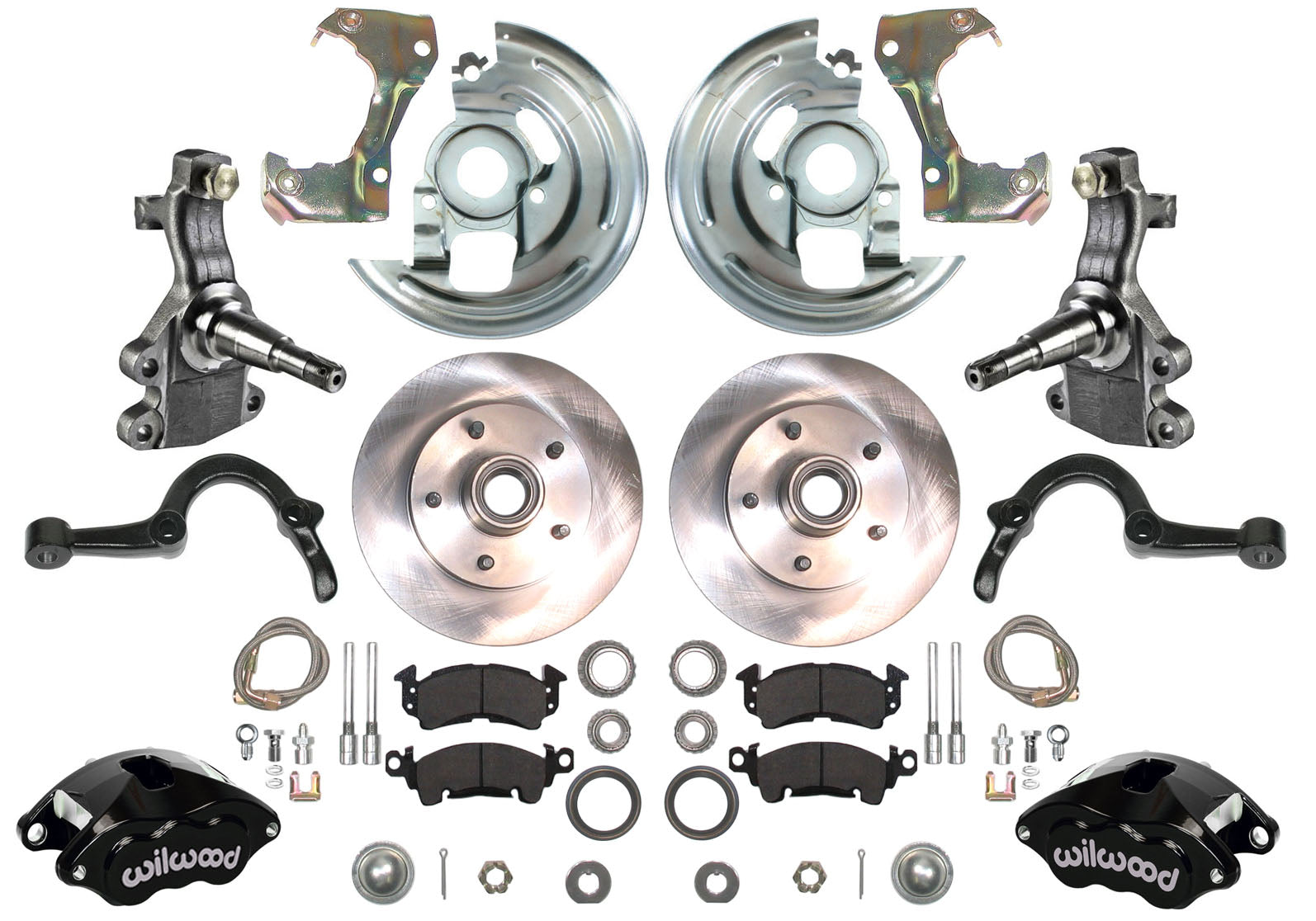 64-72 A-BODY DISC BRAKE & 2" DROP SPINDLE KIT,11" ROTORS,BLACK WILWOOD CALIPERS