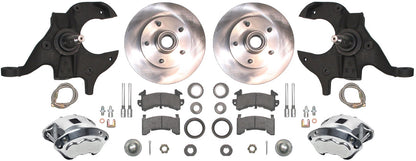 64-72 A-BODY DISC BRAKE & 1-PIECE 2" DROP SPINDLE KIT,11" ROTORS,POLISH CALIPERS