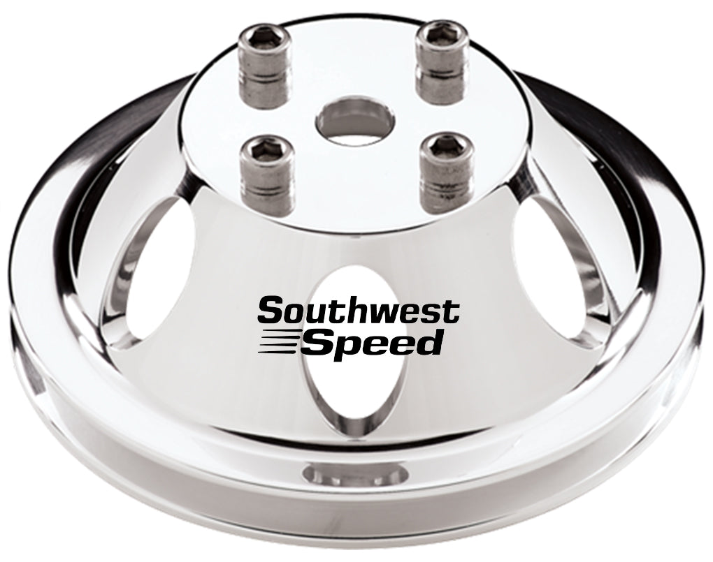 THE BENEFIT OF A BILLET ALUMINUM PULLEY OVER A CAST PULLEY IS EQUAL DENSITY. WITH A CAST PULLEY, THE ALUMINUM IS POURED INTO A MOLD AND THEN ALLOWED TO COOL. THIS PROCESS CAN CREATE VARIATIONS IN DENSITY THROUGHOUT THE PULLEY. DENSE AREAS ARE HEAVIER THAN THE MORE POROUS AREAS CAUSING THE PULLEY TO VIBRATE AT HIGH RPM. SOUTHWEST SPEED PULLEYS ARE EQUALLY DENSE THROUGHOUT; EQUAL WEIGHT TRANSLATES TO A TRUE AND BALANCED PULLEY DRIVE SYSTEM.