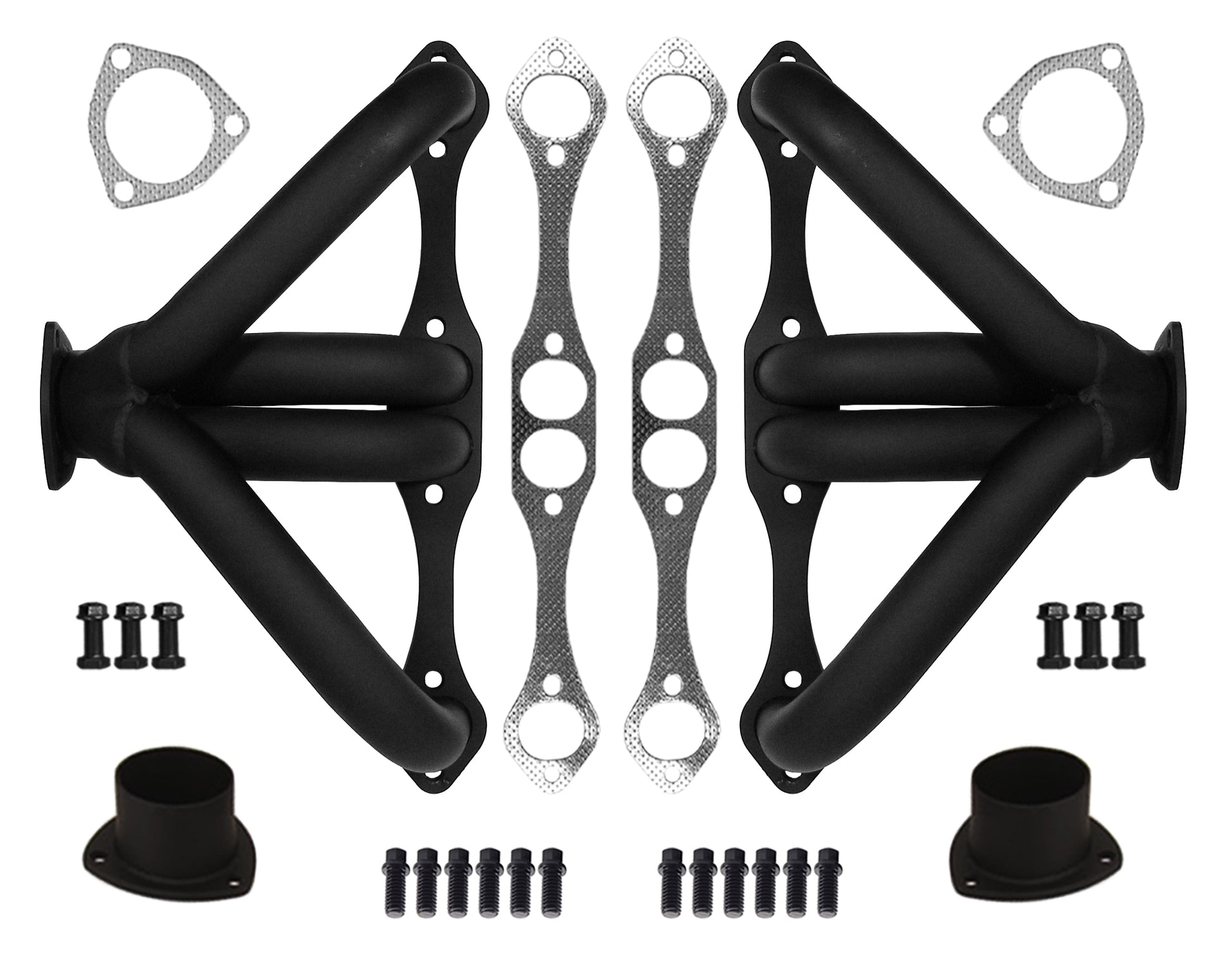 HEADER,SBC,1 5/8" TIGHT,BLOCK HUGGER,ANGLE PLUG,2 1/2",BLACK