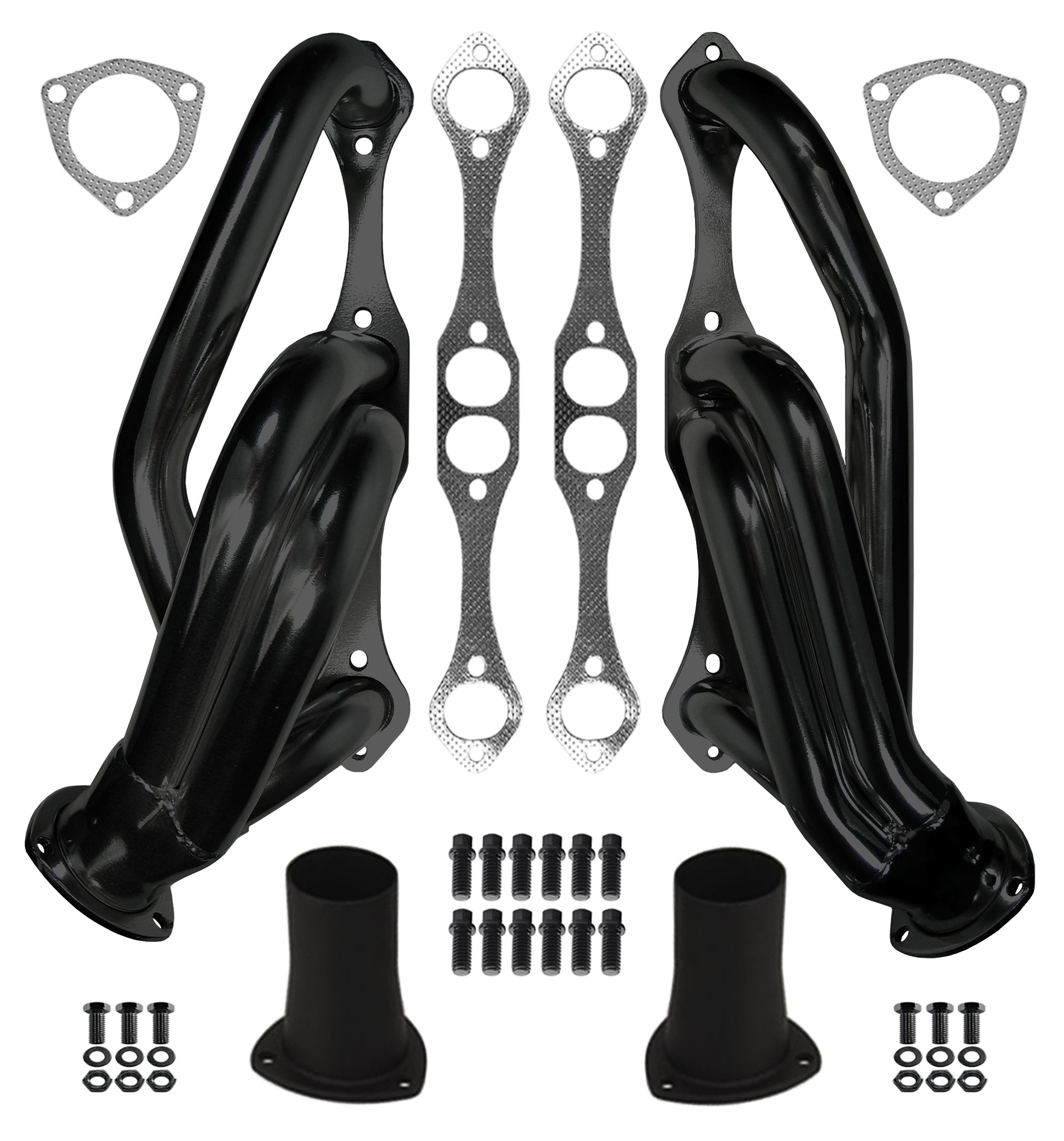 HEADER,SBC,1 5/8",55-57 CHEVY W/ RACK & PINION,3",BLACK