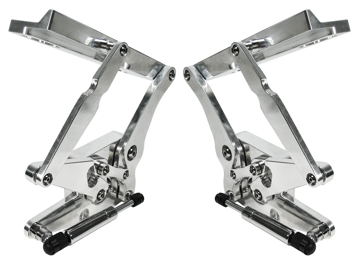 - BRAND NEW PAIR (LEFT & RIGHT) OF POLISHED ALUMINUM SOUTHWEST SPEED BILLET HOOD HINGES WITH GAS SPRINGS THAT FIT 1969-1970 MUSTANG WITH FIBERGLASS & CARBON FIBER HOODS. (SWS PART #890-1309).