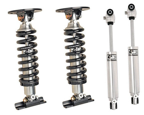 Upgrade your suspension to adjustable coilovers up front and adjustable shock absorbers in the rear. This Aldan American front and rear Suspension Kit features double adjustable front coilovers and rear double adjustable shocks for a one stop solution for improved handling and a better ride. Made in the U.S.A. Aldan 2wd truck coilover kits are designed for an OEM like fitment that offer greater tunability and a wide range of ride height adjustment for the ultimate in suspension handling and performance. Aldan coilovers are easy to install and include everything you need to bolt-on to your factory, or aftermarket control arms. Front coilovers from Aldan will lower 0.0-2.0″ when installed. Rear, adjustable shocks will work with factory rear shock mounts and offer a superior ride when comparing to conventional shock absorbers. Aldan coilovers and shocks are factory serviceable and fully rebuildable. 750 lb. spring rate. If you are looking to achieve the perfect stance as well as gain a smoother, more consistent ride – Check out Aldan Road Comp and Track Comp Suspension kits.