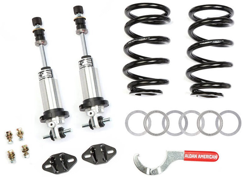 Upgrade your 1963-1965 Buick Riviera front suspension to Aldan American Track Comp Series double adjustable front coilover kits. Made in the U.S.A. Aldan coilover kits are designed for an OEM like fitment that offer greater tunability and a wide range of ride height adjustment for the ultimate in suspension handling, stance and performance. Double Adjustable coilovers from Aldan American allow independent adjustment of both the rebound and compression shock settings for added suspension performance and handling gains on the street or at the track. Aldan coilovers are easy to install and include everything you need to bolt-on to your factory, or aftermarket control arms. Front coilovers from Aldan will lower 1.0-2.5″ when installed. If you have a Buick Riviera and are looking to achieve the perfect stance as well as gain a smoother, more consistent ride – Check out Aldan American coilover kits.