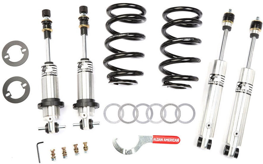 Upgrade your 1997-2003 Ford F-150 front suspension to coilovers and rear suspension to adjustable shock absorbers with Suspension Kits from Aldan American. Made in the U.S.A. Aldan 2wd truck coilover kits are designed for an OEM like fitment that offer greater tunability and a wide range of ride height adjustment for the ultimate in suspension handling and performance. Aldan coilovers are easy to install and include everything you need to bolt-on to your factory, or aftermarket control arms. Front coilovers from Aldan will lower 0.0-2.0″ when installed. Rear, adjustable shocks included will work with factory rear shock mounts and offer a superior ride when compared to conventional shock absorbers. Aldan coilovers and shocks are factory serviceable and fully rebuildable. If you have a Ford F-150 and are looking to achieve the perfect stance as well as gain a smoother, more consistent ride – Check out F-150 Suspension Kits from Aldan American.