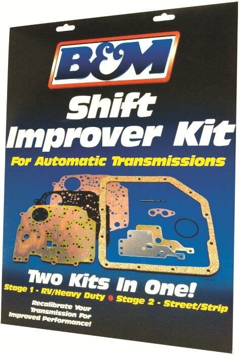 THIS B&M SHIFT IMPROVER KIT IS COMPATIBLE WITH 6 CYL AND V8 ENGINES, ALONG WITH 1966-1977 A-904 TRANSMISSIONS WITH 6 CYL ENGINES AND 1968-1970 A-904 TRANSMISSIONS WITH V8 ENGINES. RECALIBRATES YOUR AUTOMATIC TRANSMISSION FOR OPTIMUM PERFORMANCE, EXTENDED LIFE BY ELIMINATING SHIFT OVERLAP AND EXCESS WEAR ON CLUTCHES & BANDS DUE TO SLIPPAGE.